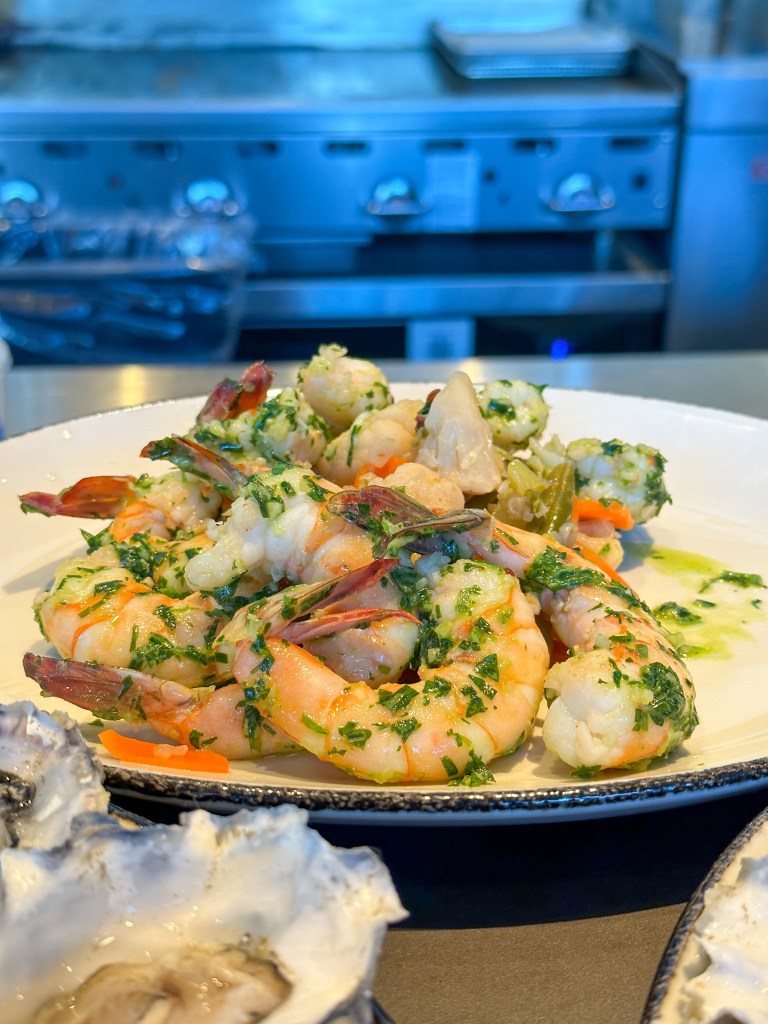 The food menu features oysters, mussels, the largest shrimp I’ve ever seen, striped bass, black angus filet, and bison ribeye. The prices reflect the quality of the ingredients, with entrees ranging from $29 to $110. Urban Hill seems to be the Hill group’s final leg of their three-legged stool of affordability, with Hill’s Kitchen at the lower price range, Hearth & Hill in the middle, and Urban Hill at the top. Seems like a smart strategy to me.